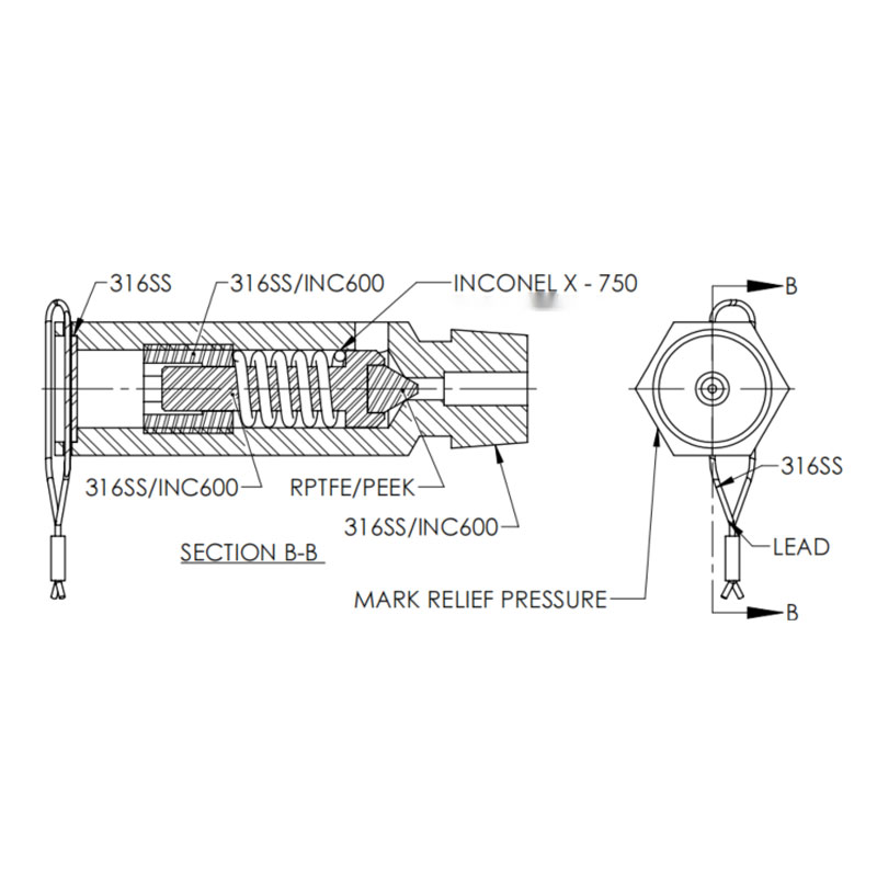 机身采用316SS/304SS不锈钢(可定制),弹簧采用INCONEL X-750,密封采用PEEK。它具有优异的耐腐蚀性,耐磨性和耐高温性,适用于各种恶劣的工作条件。